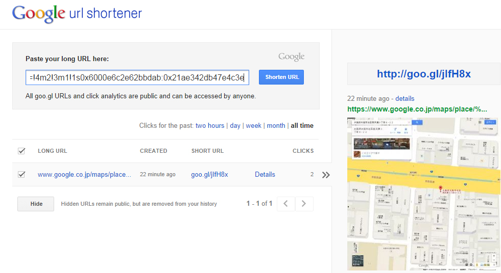 ただ、過去に短縮したURLのリスト化やマーケティングの履歴閲覧などは